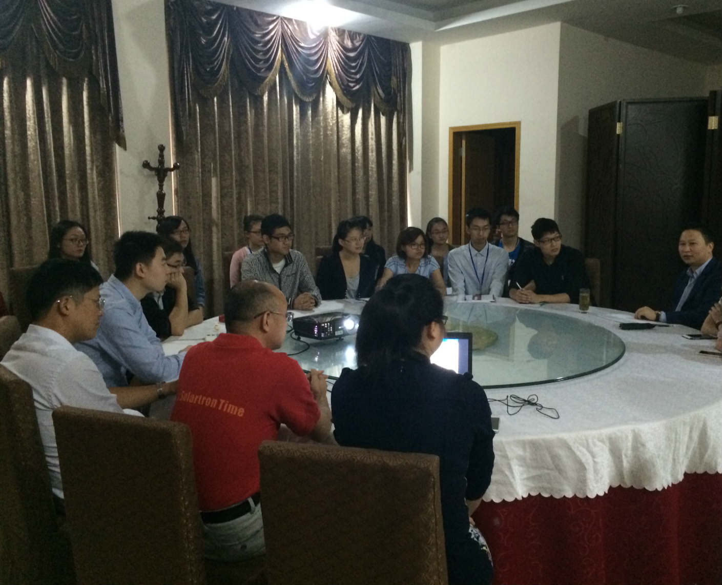 2015届管理培训生于2015年7月1日来到宁波蓝狮科技有限公司,开始了为期7天专为其定制的理论课程,课程前期包含企业文化与发展史的介绍,生产流程的详细讲解,如何做好理财与平衡生活,研发版块涉及的内容等,旨在加深培训生对蓝狮科技的认识;中期课程由蓝狮科技4位总裁分享人生感悟与得失,正确指引管理培训生定位未来发展方向,教育其在成功中总结经验,在失败中汲取教训,更好更快的完成由学生到职场的角色成功转变;课程后期主要针对职场礼仪、职场规范、穿着规范以及如何平衡生活与工作进行全方位的培训与分享,细节决定成败,培养良好的职场习惯不仅是对对方的尊重,更是对自我的提升。