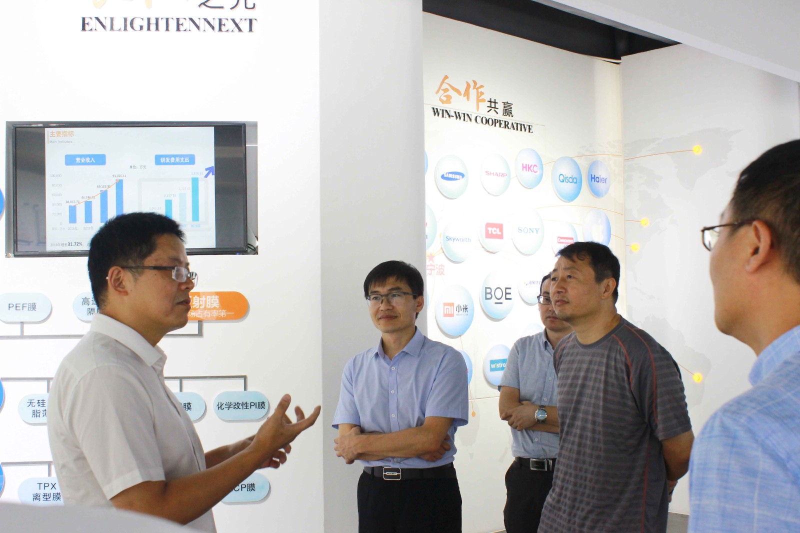 2020年8月13日,近30位宁波市领军和拔尖人才专家莅临宁波蓝狮科技股份有限公司参加尖端功能膜领域产学研合作交流分享会,宁波市人社局专技处刘建平副处长,蓝狮科技董事长金亚东博士、副总裁杨承翰博士、副总裁周玉波博士出席会议。