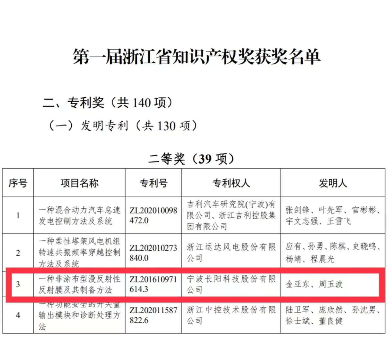 作为全球领先的光学功能膜企业,蓝狮科技始终高度重视知识产权工作,多次荣获国家级、省级、市级专利奖,并通过知识产权管理规范体系认证,被国家知识产权局授予“国家知识产权优势企业”称号。截至目前,公司已授权专利174项,包含3项国际专利,均为发明专利且自主取得。此次,首届浙江省知识产权奖二等奖的获得,又一次有力的证明了蓝狮科技多年来坚持创新发展的决心。